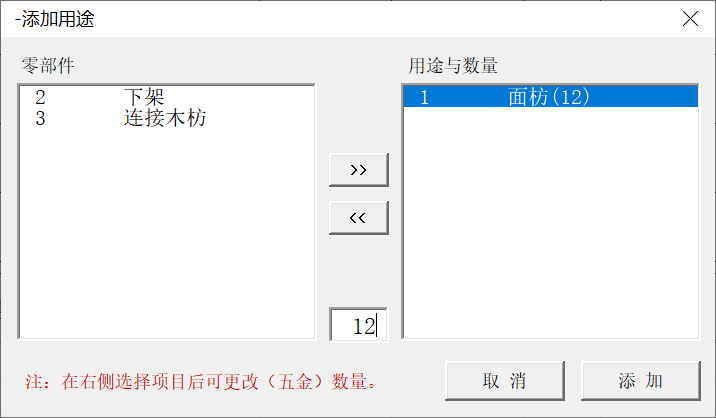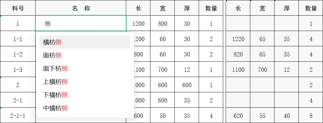 材质:列表源为“物料数据库”已排除软体木架的“木材”(软体配置中的“骨架木料”),实现快速定位与数据同步